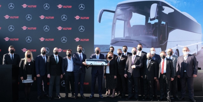4 Kasım Perşembe günü, Altur Turizm’in İstanbul Yenibosna’da yer alan genel müdürlük tesislerinde gerçekleşen teslimat töreninde Mercedes-Benz Türk Otobüs Pazarlama ve Satış Direktörü Osman Nuri Aksoy, Otobüs Filo Satış Grup Müdürü Burak Batumlu, Ali Osman Ulusoy Şirketler Grubu Yönetim Kurulu Başkanı Emriye Hülya Ulusoy, Hassoy Motorlu Vasıtalar Genel Müdürü Selim Saral ve Otobüs Satış Müdürü Cenk Soydan; araçları Altur Turizm Yönetim Kurulu Başkanı Abdurrahim Albayrak, Yönetim Kurulu Başkan Yardımcısı Hikmet Albayrak, Yönetim Kurulu Üyesi Yasin Albayrak, Altur Turizm Genel Müdürü Halil Kemal, Genel Müdür Yardımcıları Engin Koşan ve Süleyman Tuncer, Altur Turizm Garaj Müdürü Yusuf Yazıcı ve Altur Turizm Destek-Kademe Müdürü Tacettin Işık’a teslim etti.