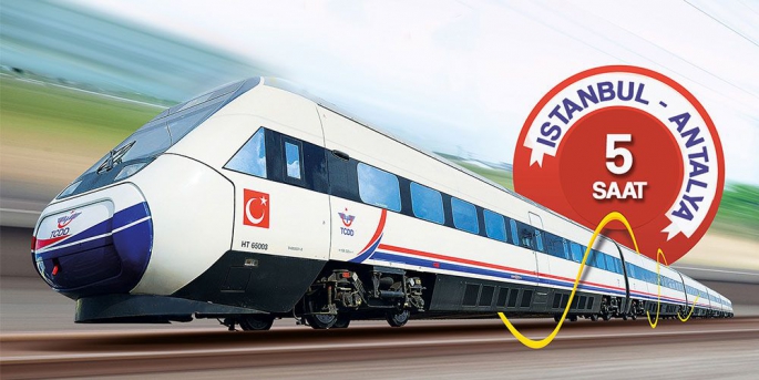 "Ankara-Eskişehir-Bursa 4 saat, Konya-Eskişehir-Bursa 4 saat 15 dakika, Ankara-Konya-Karaman 3 saat 35 dakika, İstanbul-Konya-Karaman 6 saat 55 dakika, Ankara-Konya-Antalya 7 saat 20 dakika, Ankara-Konya-Alanya 7 saat 30 dakika, İstanbul-Konya-Antalya 10 saat 30 dakika, İstanbul-Konya-Alanya 10 saat 45 dakika."