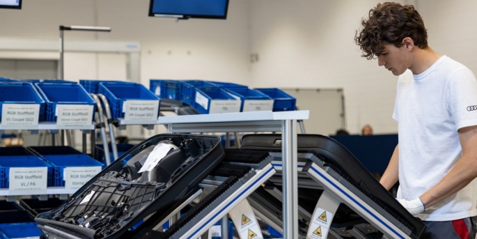 Audi’nin gelecekteki üretim taleplerine verdiği cevaplardan biri olan Modüler Montaj, sert konveyör bantları yerini, değişken bir istasyon dizisi, değişkene bağlı işlem süreleri (sanal konveyör bandı) ile oluşan dinamik prosedürlere bırakıyor. Konsept model hali hazırda sonraki seri uygulamaya hazırlık amacıyla, Ingolstadt fabrikasında iç kapı paneli ön montajında kullanılıyor. Audi’nin çevik ekiplerde ağ bağlantılı üretim geliştirdiğinin ve inovasyon kültürünün en önemli örneği olarak kabul edilen pilot proje, daha esnek ve verimli montaj imkanı sunuyor.