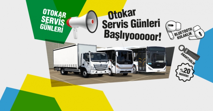 Türkiye genelindeki yaygın servis ağıyla kullanıcısına satış sonrasında düşük bakım giderleri ve uygun parça maliyeti sunarak ticari araç sahiplerinin yükünü her daim hafifleten Otokar'ın kazandıran "Servis Günleri" kampanyası 31 Ekim’e kadar devam edecek. Ticari araç sahipleri kampanya kapsamında işçilik, yedek parça, periyodik bakım ve mekanik parçalarda yüzde 20 indirim fırsatından yararlanacak.