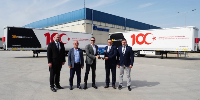 Teslimatla birlikte, Cumhuriyet'in 100. yılını yansıtan logo tasarımına sahip treyler ve çekiciler yollara çıkacak. Sarp Intermodal, bu özel treyler ve çekicilerdeki mesajlar ile Cumhuriyetin 100. yılını kutlayacak.
